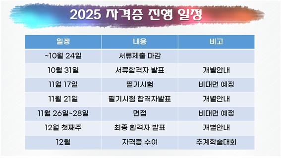 ¼·ùÀýÂ÷¸¦ ½ÃÀÛÀ¸·Î Çʱâ½ÃÇè°ú ¸éÁ¢À» °ÅÃÄ 2025³â 12¿ù Ãß°èÇмú´ëȸ ½Ã ÀÚ°ÝÁõ ¼ö¿©½ÄÀ» ÁøÇàÇÒ ¿¹Á¤ÀÔ´Ï´Ù. µû¶ó¼ Çѱ¹»ó´ã½É¸®±³À°º¹ÁöÇÐȸ ÀڰݰËÁ¤ ±â°£¿¡ ÀÚ°ÝÁõ(½É¸®»ó´ã»ç, »ê¾÷¾ÈÀü½É¸®»ó´ã»ç, Á¤½Åº¸°ÇÁõÁø»ó´ã»ç, ±³±Ç½É¸®»ó´ã»ç) ½ÅûÀ» ÇÏ½Ç °èȹÀÌ Àִ ȸ¿øºÐµé²²¼´Â ÇÐȸ ÀÚ°Ý Á¶°ÇÀ» ÆÄ¾ÇÇÏ½Ã¾î ¾Æ·¡ ³»¿ëÀ» Âü°íÇϼż ±â°£ ³»¿¡ ¼·ù¸¦ Á¦ÃâÇϽñ⠹ٶø´Ï´Ù.