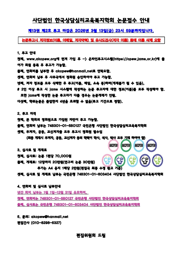 »ç´Ü¹ýÀÎ Çѱ¹»ó´ã½É¸®±³À°º¹ÁöÇÐȸ ³í¹®Á¢¼ö ¾È³»